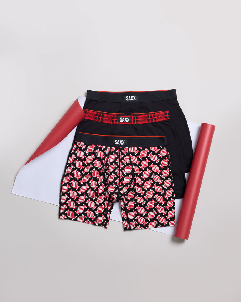 Experience ultimate comfort with the Saxx Vibe Xtra BB Fly 3-Pack. This versatile set features a mix of sweet stripe, check, and black designs to match any style. Built with Saxx's signature BallPark Pouch technology, these boxers provide superior support and breathability throughout your day. The soft, stretchy fabric moves with you, eliminating chafing and bunching. Perfect for everyday wear, this three-pack offers excellent value and ensures you always have a fresh pair on hand.