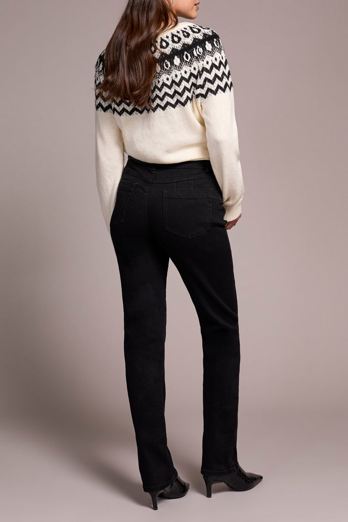 Experience everyday comfort with the Tribal Sophia Pull On Straight Jeans in black. Designed with a pull-on style and pockets for convenience, these jeans offer a relaxed fit that moves with you. The straight leg cut provides a classic look while ensuring ease and comfort throughout your day. Perfect for casual wear, they blend style and practicality effortlessly.