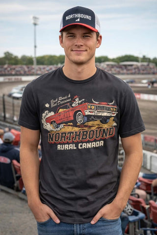 Embrace the open road and carefree spirit with this charcoal tee. Featuring a bold "Northbound Back Roads & Bad Decisions" graphic, it's perfect for anyone who loves adventure, spontaneity, and a good laugh. Soft, breathable cotton keeps you comfortable whether you're planning your next trip or just channeling that wanderlust energy. A wardrobe essential for free spirits and road trip enthusiasts.